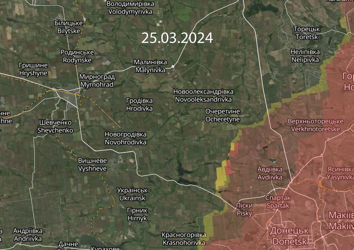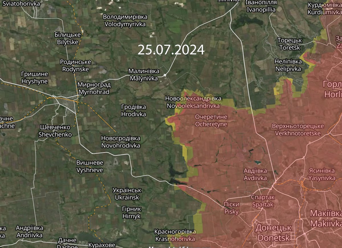 Russland treibt vor allem den Angriffsvektor über Otscheretyne hinaus weiter voran. Das Ziel scheint eine strategisch wichtige Kreuzung an der Straße zwischen Pokrowsk und Kostjantyniwka zu ein. 7/