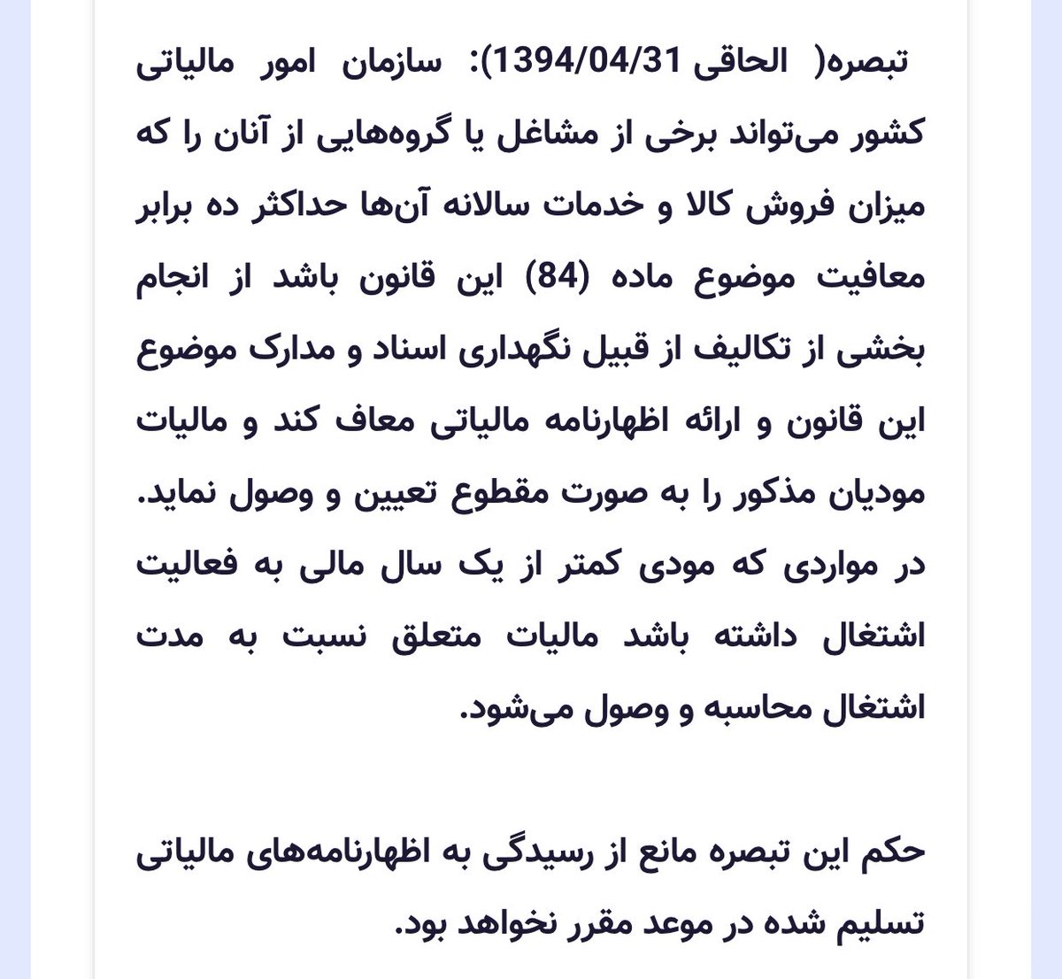 “حکم بند ۱_۳، #مانع از بارگذاری فرم تبصره مذکور، #بادرخواست_مؤدیان محترم یا اتاق های اصناف و یا تشکل های حرفه ای ذیربط آنها بعد از تاری مذکور نخواهد بود”؛
