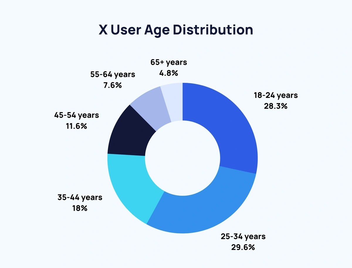 ✅ The majority (around 58%) of X users are under 35 years old.