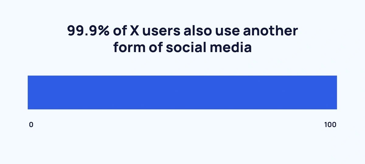 6/ X preferences: According to DataReportal’s 2023 data, 99.9% of X users also use another social media platform.
