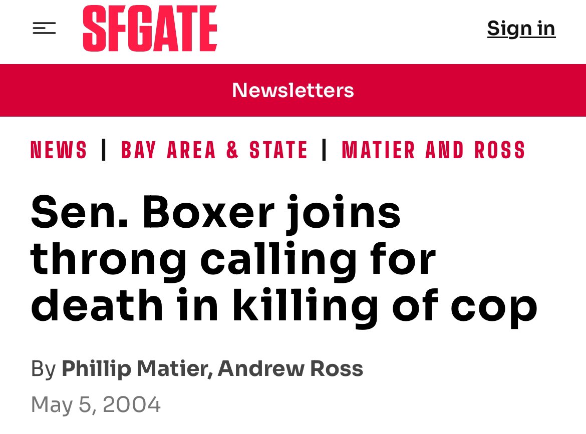 California Attorney General Bill Lockyer (a far-left progressive) noted that he would have sought a death sentence if he were the D.A. Senators Dianne Feinstein and Barbara Boxer publicly disagreed with Harris’ decision. Boxer went so far as to urge that Hill be prosecuted under federal death penalty laws.