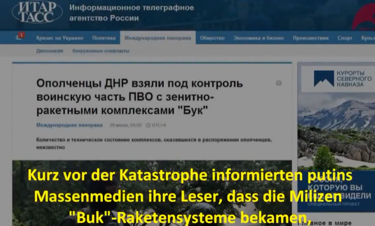 Vor dem Abschuss der Passagiermaschine bereitete die Propaganda noch stolz die Zuseher vor, dass die "Milizen", in Wahrheit russische Proxies, Extremisten wie Wagner und "Soldaten auf Urlaub" bald mit einer BUK operieren würden vor...