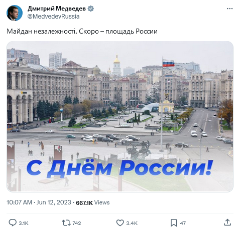 As if this scenario isn't horrifying and unacceptable enough, it can't be trusted. Medvedev stated that even after a ceasefire, Russia intends to annex all of Ukraine. He has posted several times that all of Ukraine is Russia, including placing the Russian flag on Maidan in Kyiv