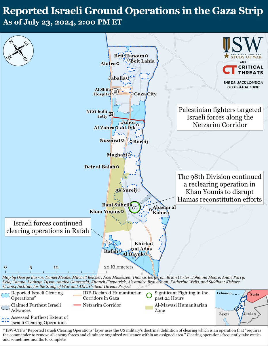 2/ Geolocated footage published on July 24 shows that Ukrainian forces stopped a reinforced battalion-size Russian mechanized assault near Kostyantynivka (southwest of Donetsk City) after Russian forces advanced up to the southeastern outskirts of the settlement.
