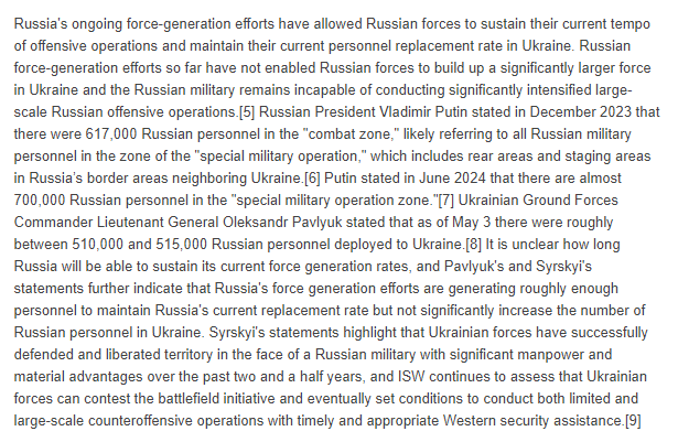 2/ Russian force-generation efforts so far have not enabled Russian forces to build up a significantly larger force in Ukraine and the Russian military remains incapable of conducting significantly intensified large-scale Russian offensive operations.