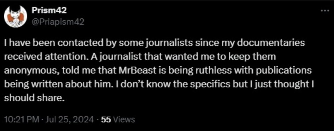 But I think that was the decision calculus here: rise in the ranks in terms of winning favor with MrBeast or lose a cushy job where you play on the internet for fun by exposing Chris, which gains him nothing other than "solidarity" with Chris' other victims.