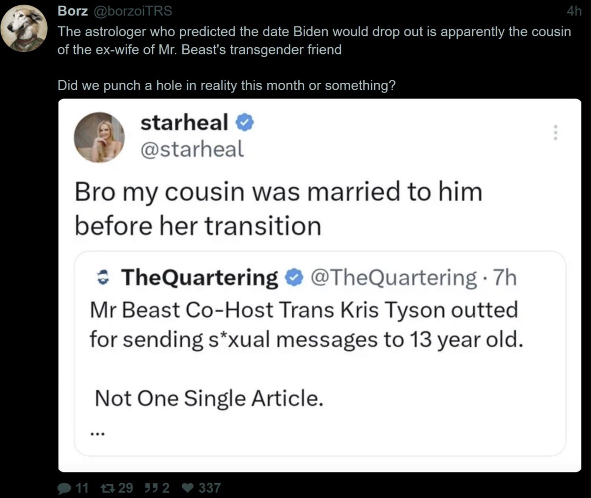 "Imagine how many internet communities they can influence. They don't need to own everyone, they just need to own enough people to force everyone else to be quiet. And that's what Disney did when people started talking about Chris Tyson, they just made every e-celeb shut up or talk of the poor trans person."