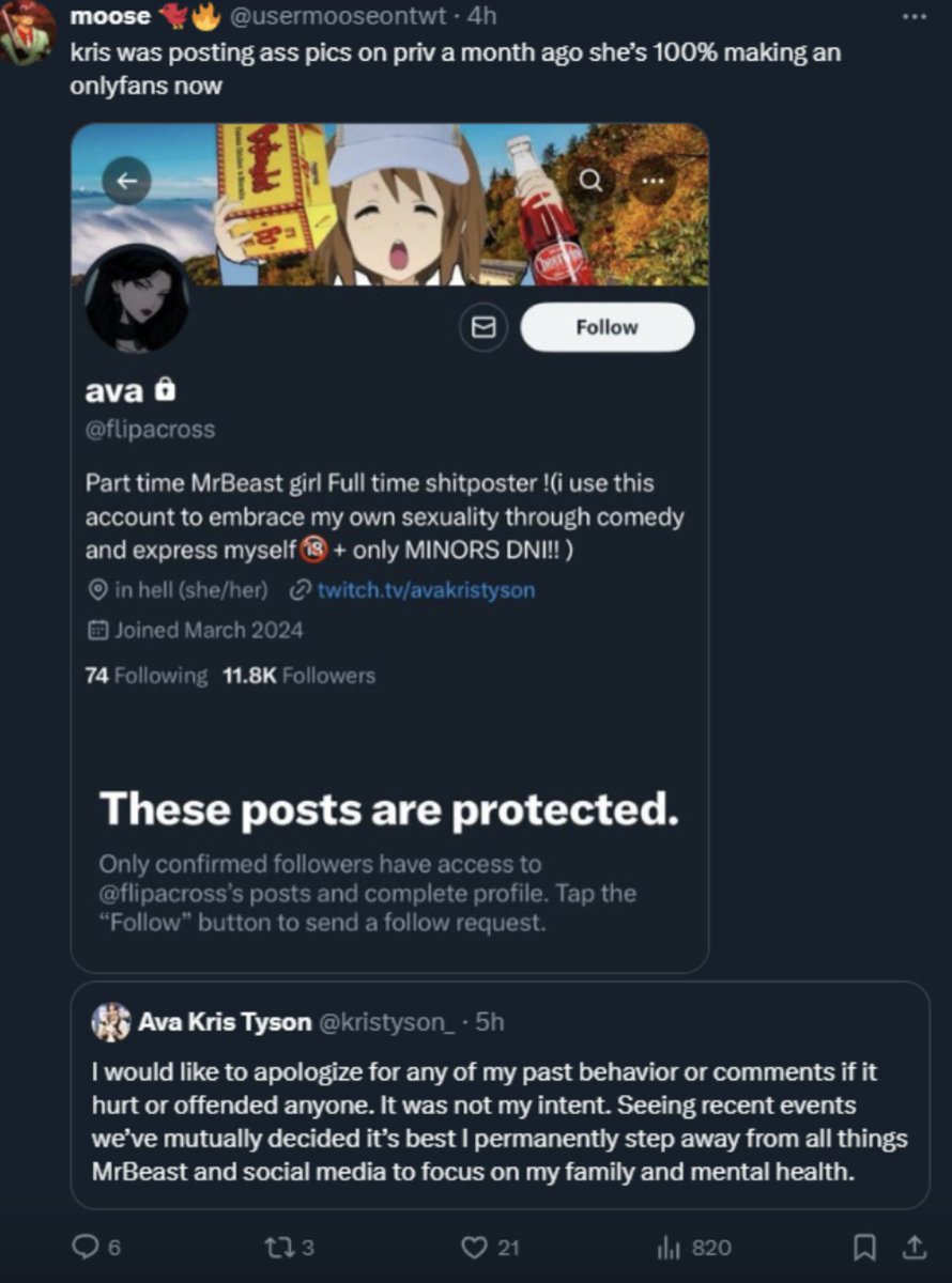 @LilNoNameFR @DogPack404 This is Chris Tyson's (Ava Kris Tyson) private twitter where he posts his nudes. The next post will have an NSFW tag as they are moderately graphic.