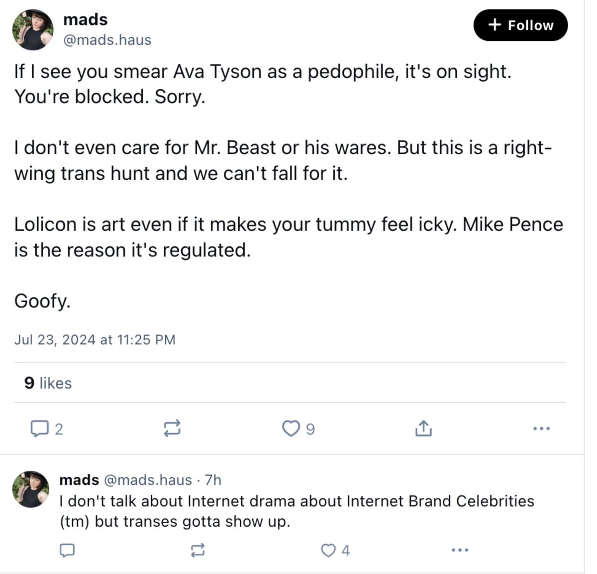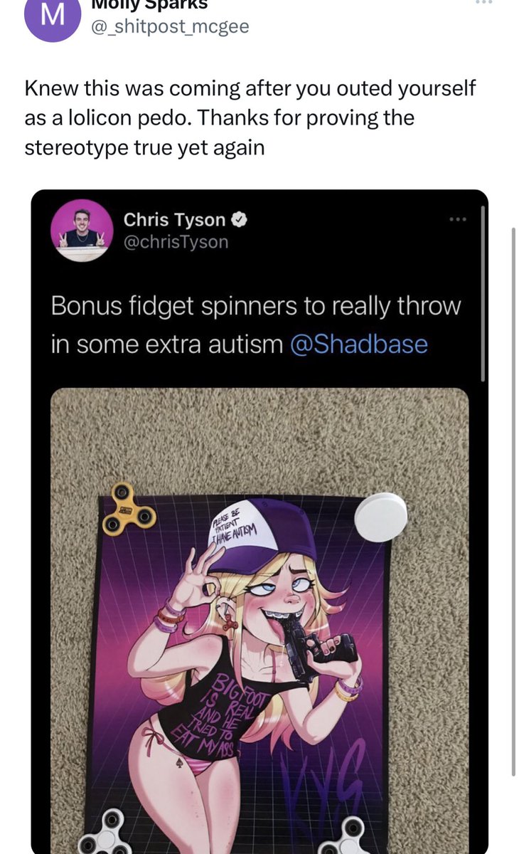 Lolicons (people who have a fetish cartoon porn depicting characters that look proportionally like children) defending Chris' association with the "Loli artist" Shad, and also referring to themselves as queer because apparently functionally being a pedophile is "queer." according to them.