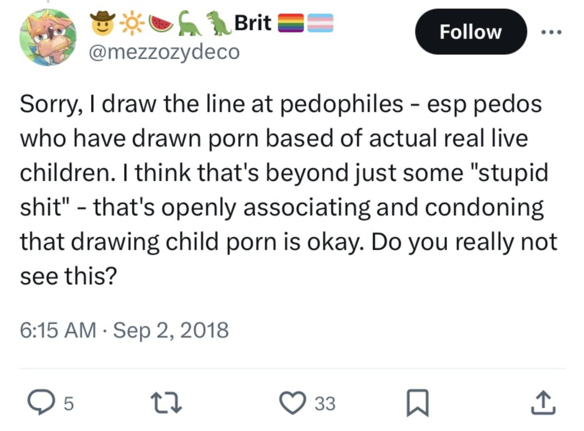@KiwiFarmsDotNet It's crazy that it has become culturally acceptable to ignore a clear constellation of behaviors that consistently appear to point in a singular direction—pornographic neonatized cartoons made to have the features of very young children.