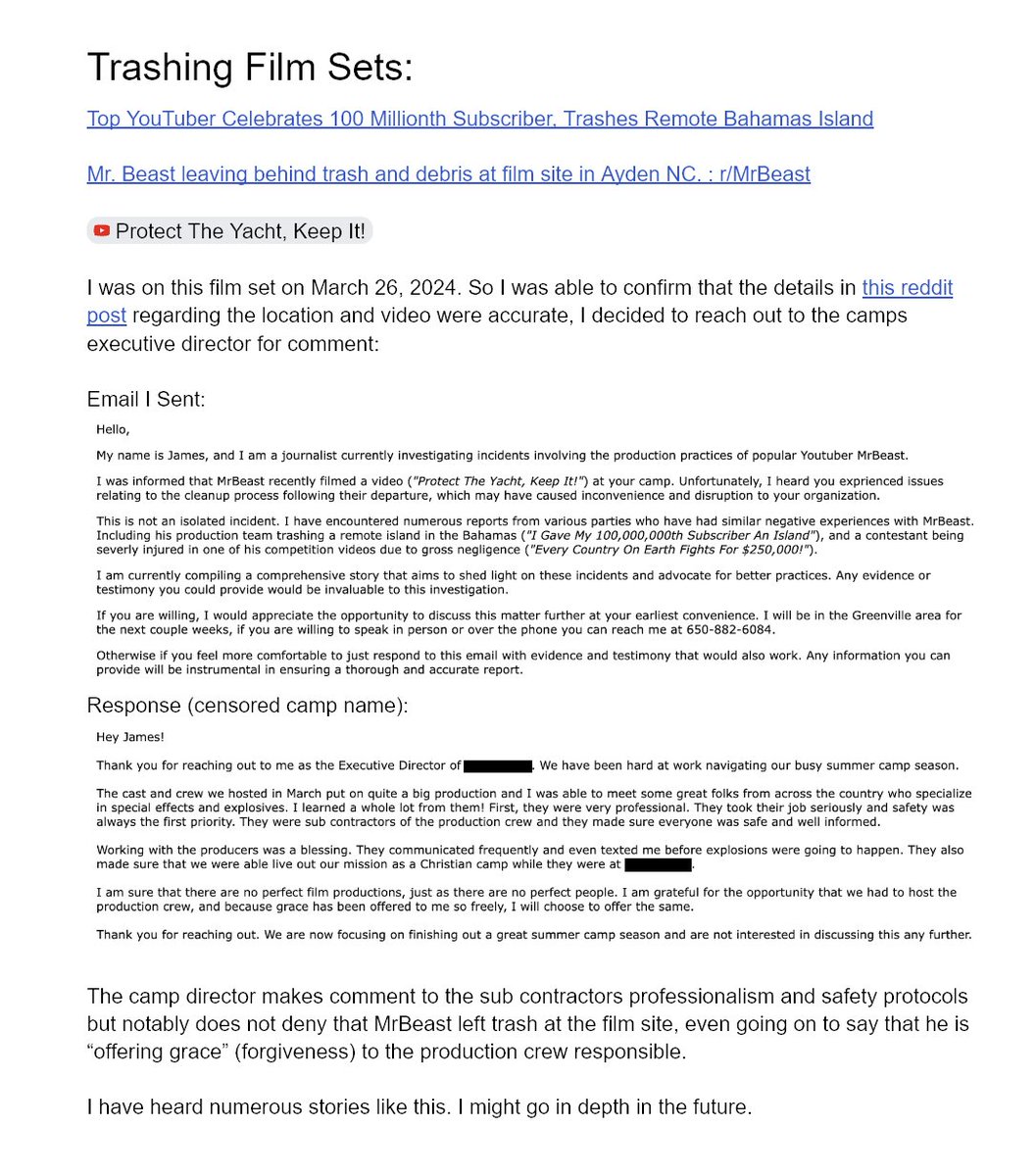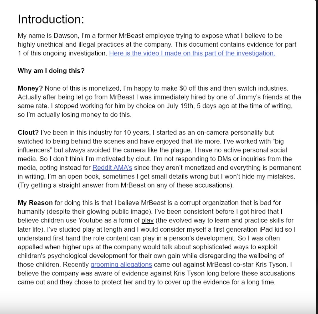 Something is clearly afoot with the first alleged victim. He is bending over backwards to try and protect Chris and MrBeast, and as mentioned above, he ended up being forced to recant some of his categoric denials of abuse or lascivious behavior.