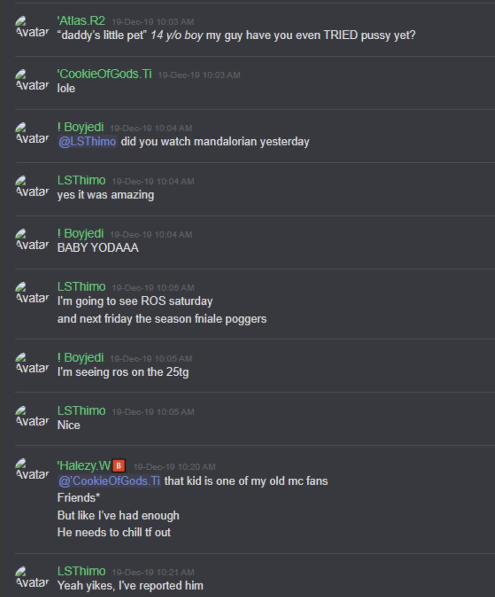@KiwiFarmsDotNet Some context regarding the grooming that happens in the discord servers
