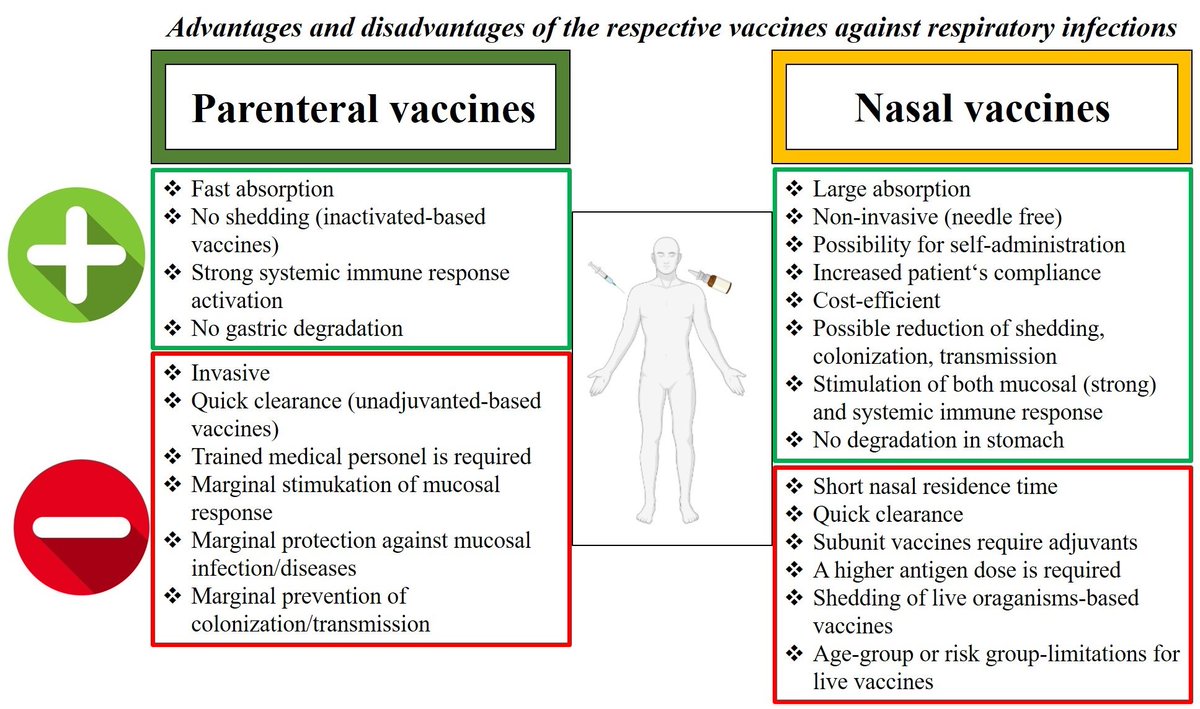 2) Vaccines given through the nose or mouth (mucosal vaccines) have advantages over vaccines given by injection (systemic vaccines) for respiratory infections like COVID-19.