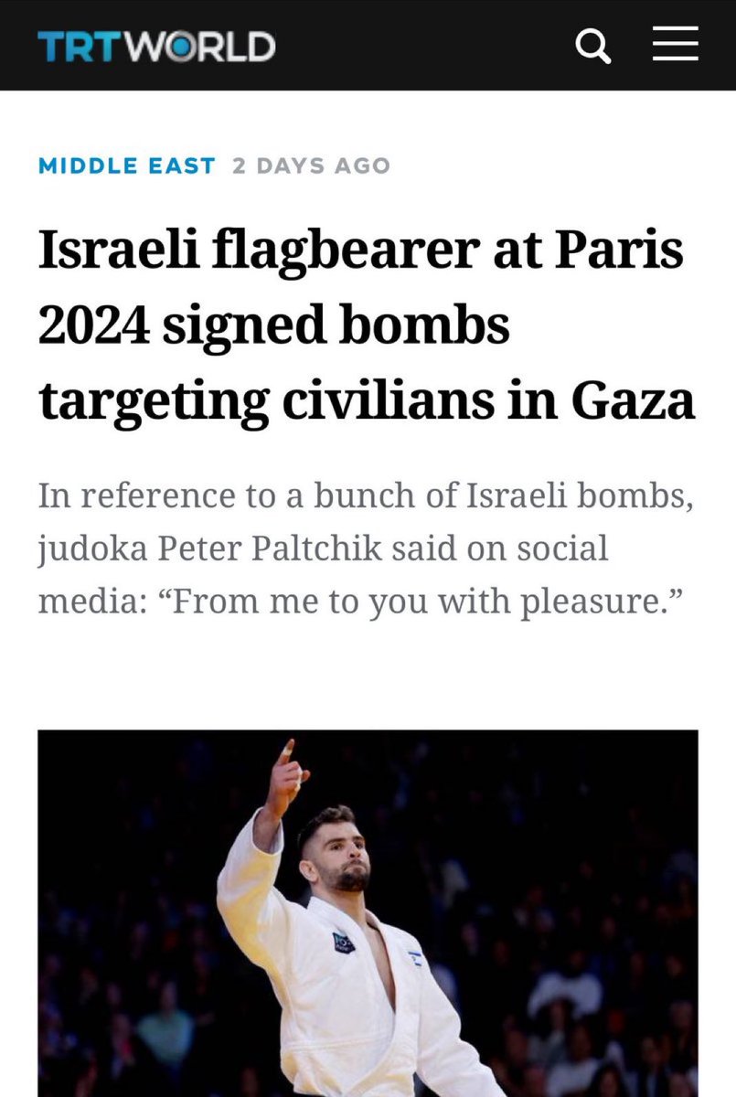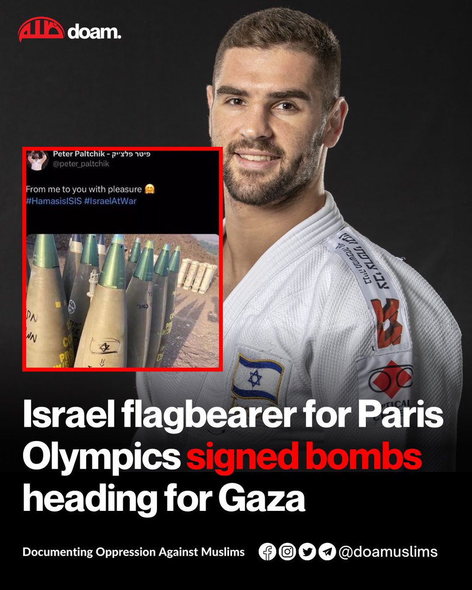 Peter Paltchik Israel's flagbearer in the Olympic Games opening ceremony posted an image on social media of bombs that he had signed destined for Gaza.