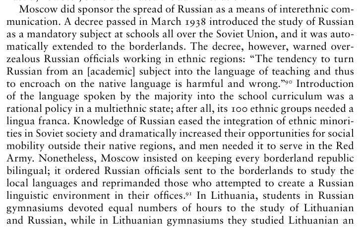 Russian was sponsored as a means of interethnic communication in a country with 100 ethnic groups. Just as people across the world feel it important to learn English. But the USSR supported local languages and punished officials who tried to replace local languages with Russian