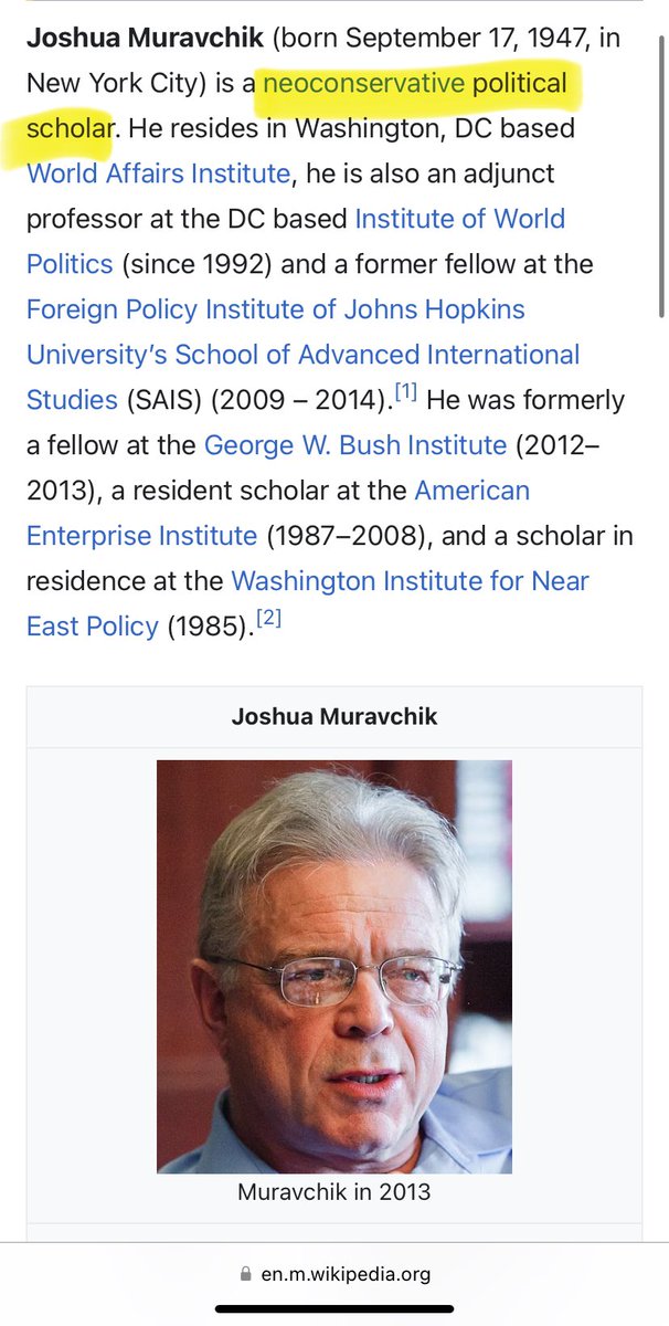 16. Joshua Muravchik (Jew): He was a member of the State Department’s Advisory Committee on Democracy Promotion from 2002 to 2009, playing a key role in the war.