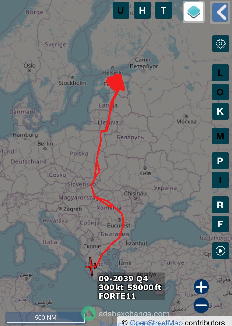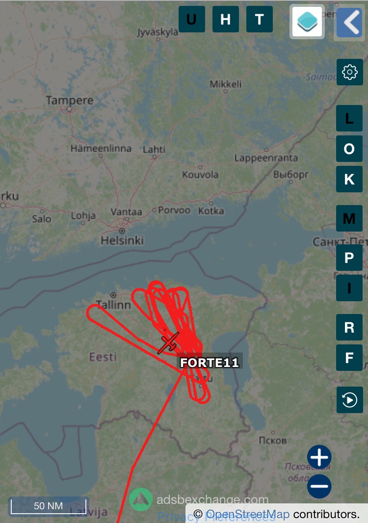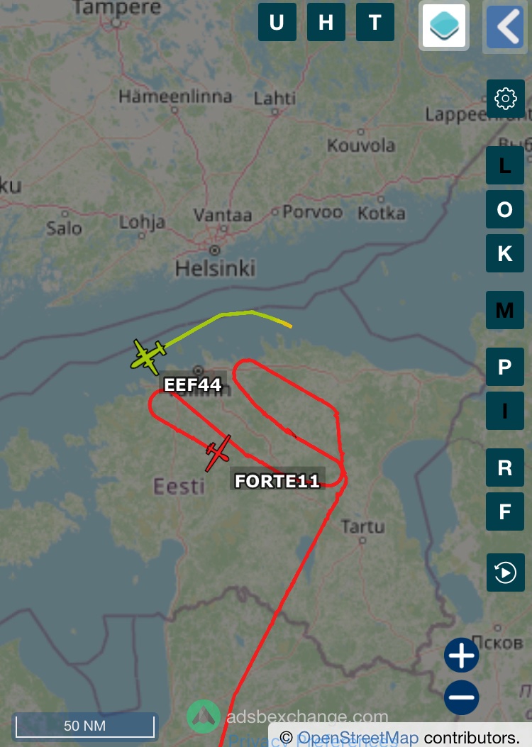 USAF RQ-4 surveillance drone FORTE11 spent 16h over Estonia and is about to return home to Sicily.