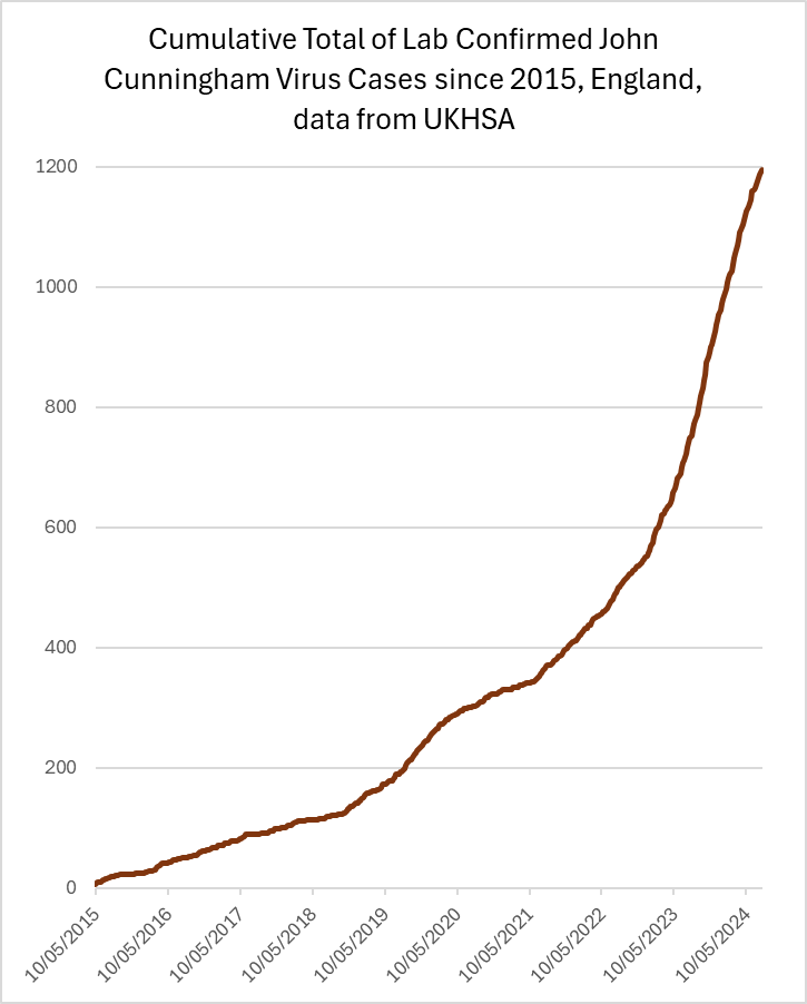 Another possibility, and one that I don't really want to contemplate, is that the rise in cases is caused by a rise in people with problems that look like PML, and then when they go looking for JCV, they find it because it's all around.