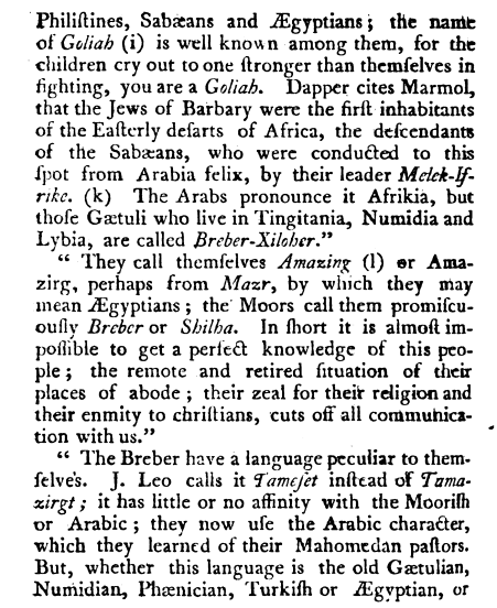 In these passages, Leo the African evokes not only the name "Amazigh" used by the Berbers but also the unity of the different Berber groups (Zenata, Sanhadja, Masmuda etc.) by this name.
