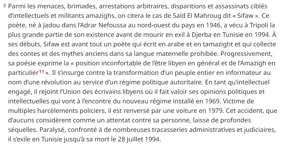 Indeed, the greatest weakness of the Berber people is that they have not preserved writings or opinions concerning their vision of themselves. So Pan-Arabist ideologists such as Ramzi Rouighi benefit from it.