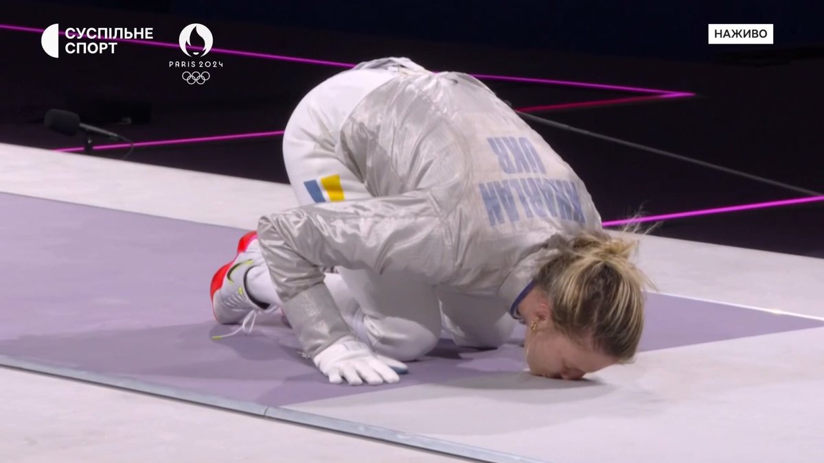Na qualificação para Paris 2024, Kharlan, já dona de três medalhas olímpicas, enfrentou a russa Anna Smirnova. Venceu, mas se recusou a apertar a mão da adversária após a luta.