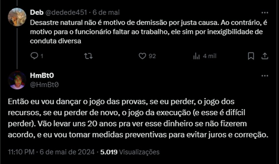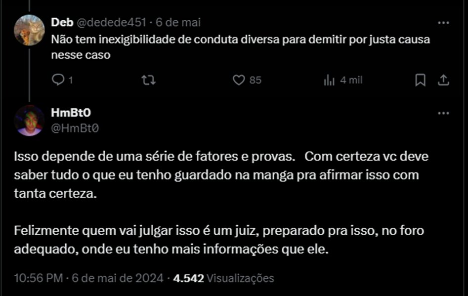 3) Ele afirma que consegue por vias oblíquas levar pro TRT e STF e algumas afirmações como que ele tem mais informações que juízes. E irá protelar até o trabalhador cansar ou fazer acordo. Deixarei nos prints. 🧶