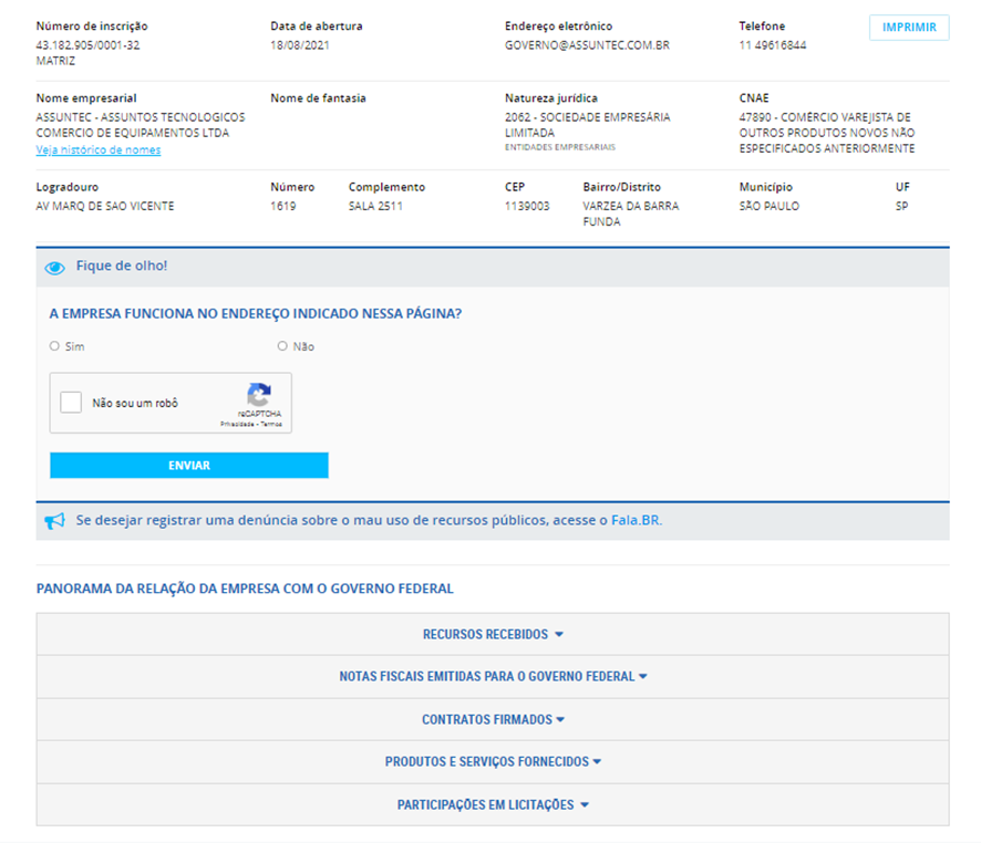 4) Fui então verificar as vendas dessa empresa para o Governo e os dados dela. Foi aberta em 18/08/2021 e vi que ela em pouco tempo vendeu bastante para o governo. E uma semana após abrir já estava ganhando licitação +
