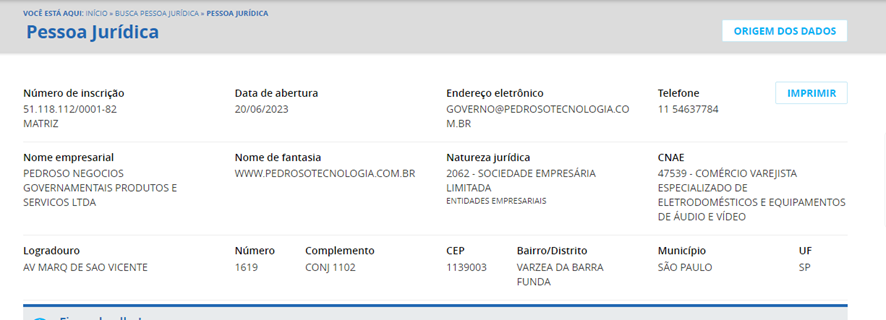 9) Podemos ver nessa empresa aberta em 2023, mas que em seu site diz dizer vender a 20 anos para o governo. +