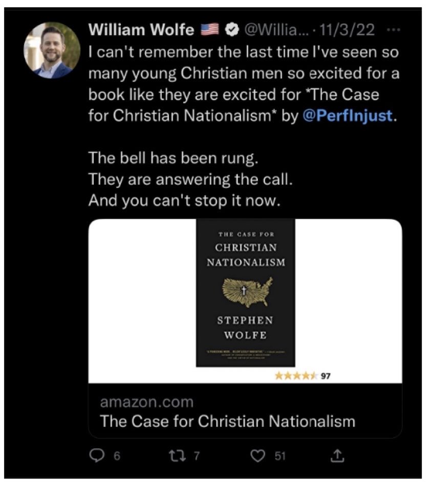 41/ In November 2022, William Wolfe recommended another book, the Case for Christian Nationalism” by Stephen Wolfe (no relation to William).