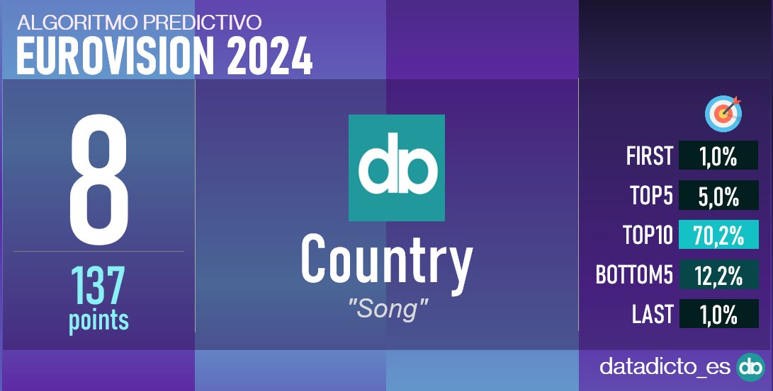 🔮🎶Mañana se celebra la Gran Final de #Eurovision2024 y nuestro Algoritmo Predictivo ya tiene los resultados finales.