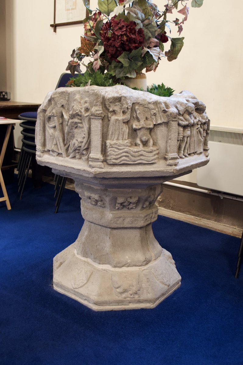 It has a font with scenes from the Passion of Christ. You can see the efforts of iconoclasts here, but thankfully it’s still in good enough shape to recognise all the scenes. Here you can see the Harrowing of Hell in the centre panel.
