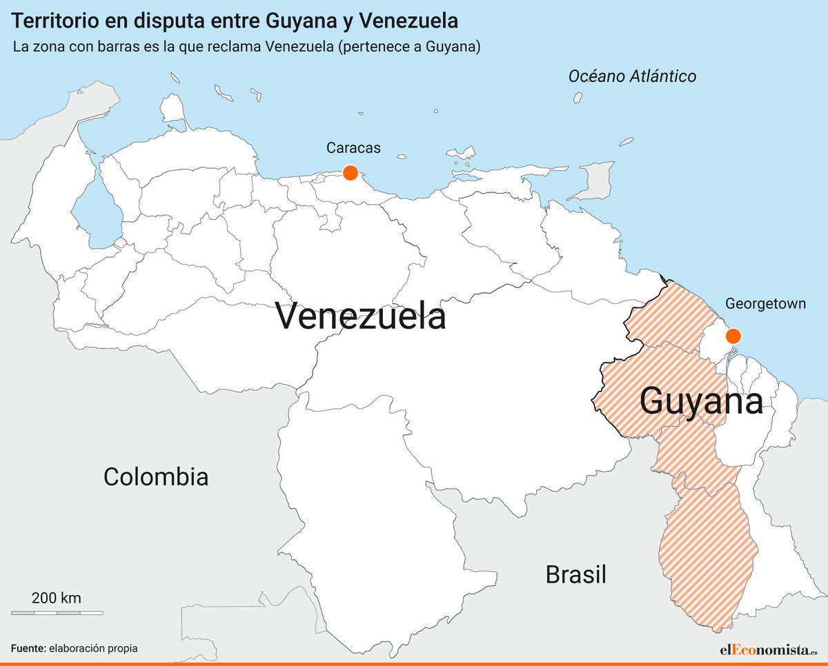 A tensão entre a Venezuela e a Guiana tem contexto e mais de um mês. É consequência do colonialismo europeu. Abro uma thread com os principais factos históricos, porque os que decidem a sua posição pelo que diga Washington estão, outra vez, a fingir que tudo começou agora +