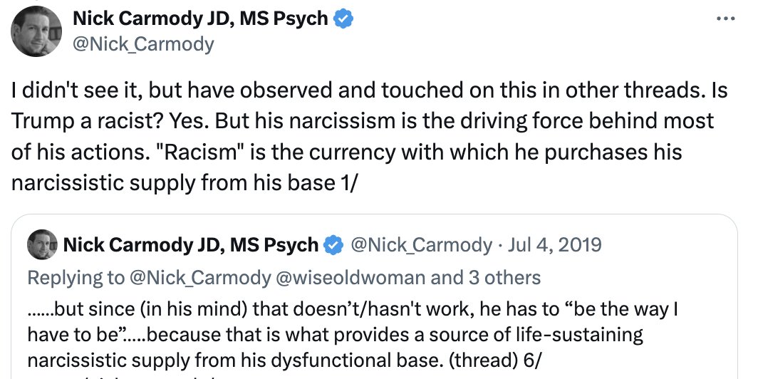 Let's expand upon this thread to include and analyze Trump's appearance at the National Association of Black Journalists....and look at it through the lens of Trump's narcissism...