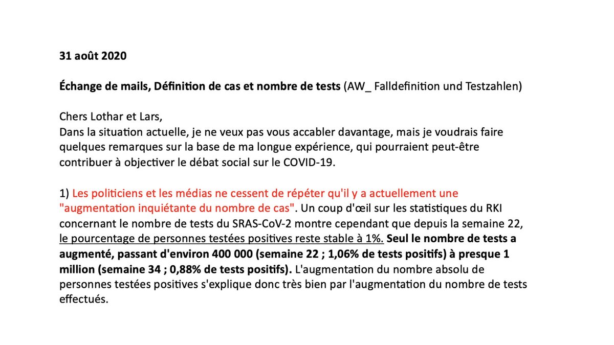 Certains spécialistes, dont Detlev Krüger, prédécesseur de Drosten à l’Institut de virologie de Berlin et manifestement plus intègre, ont tenté d’alerter sur la stratégie de tests « en l’absence d’un tableau clinique », …
