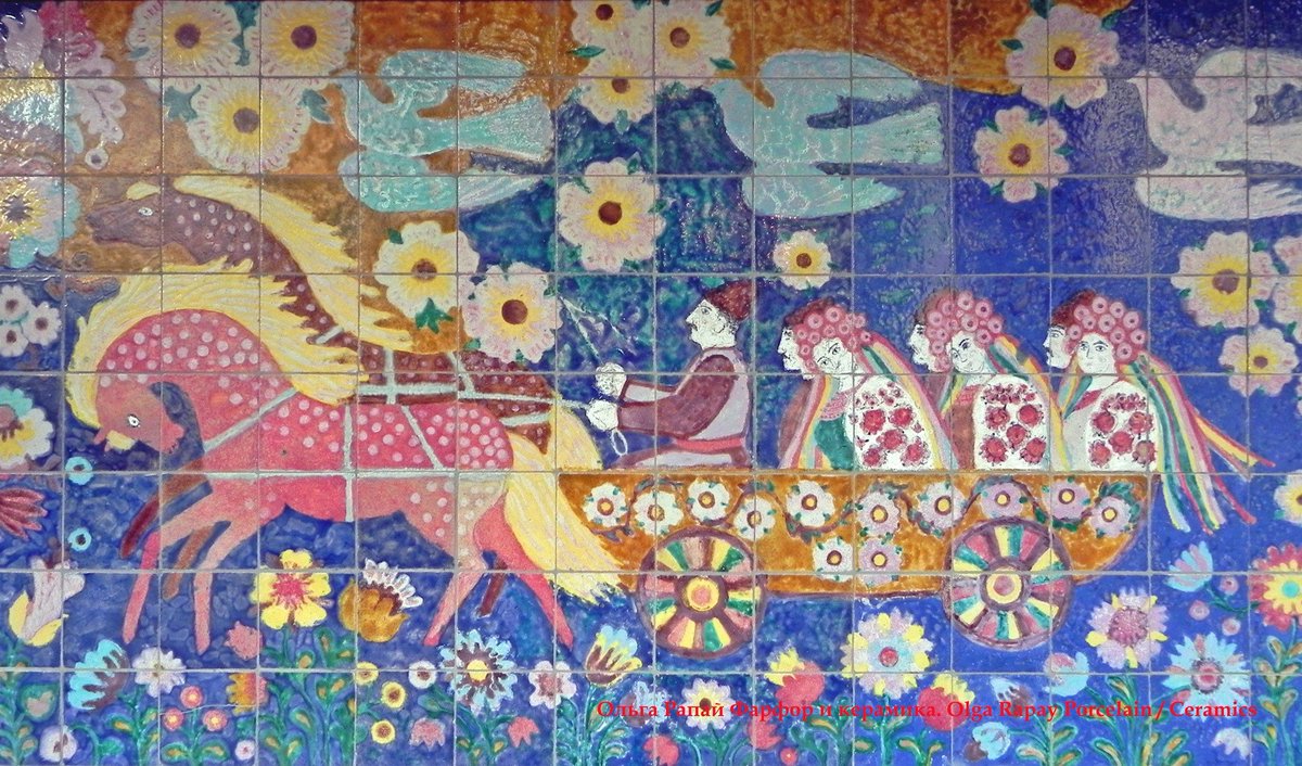 She created ceramic panels on the facade of the House of National Creative Collectives of Ukraine at 50 Taras Shevchenko Boulevard in Kyiv. In the bright patterns, you can recognize Petrykiv paintings, animals, and birds by Prymachenko, Ukrainian traditions, like weddings.