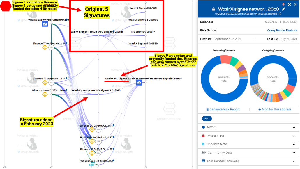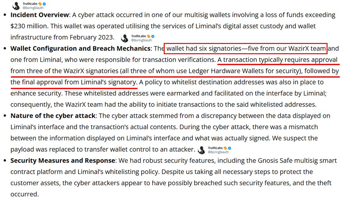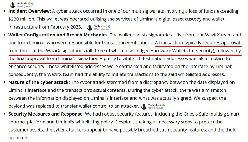 But Liminal only controlled 1 signature, where WazirX controlled 5 of the 6, all of which was setup thru Binance, not Wazir. 🚩