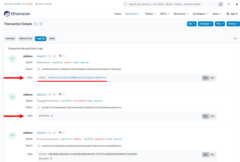 Of note, the WazirX multisig had 6 approved address' that could sign a transaction, 4 of which was required.