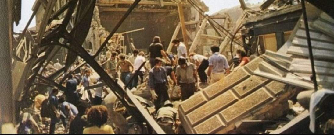 #MdT 02/08/1980 - Ore 10.25 - Una bomba esplode nella sala d’aspetto di seconda classe della stazione. Lo scoppio è violentissimo e provoca il crollo delle strutture sovrastanti le sale d’aspetto di prima e seconda classe dove si trovano gli uffici dell’azienda di ristorazione