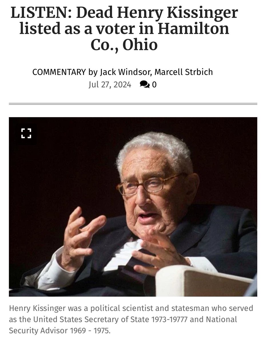 THREAD! 🚨🧵7. In another instance, a canvasser for Black Fork Strategies submitted a fraudulent registration in the name of “Henry Kissinger.” Not a single element of the registration matched any record of a Henry Kissinger on file at the Ohio Bureau of Motor Vehicles (BMV).