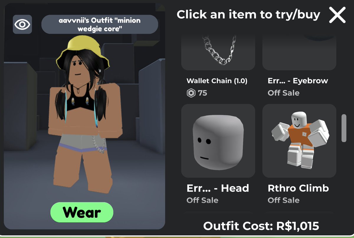 Aavvnii, while nothing of significance in her inventory has an outfit called "minion wedgie core". No idea what this means.