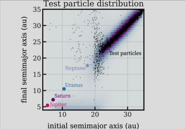 On s'intéresse ici à Uranus et Neptune qui ont eu une interaction prolongée avec un disque de débris glacés d'une masse estimée allant de 30 à 50 fois celle de la Terre !