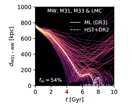 Seulement, ces dynamiques sont extrêmement complexes (c'est le principe du Problème à 3 corps). Grâce aux dernières mesures astronomiques de Gaïa et HST, une équipe internationale (Fin/RU/Fr) vient d'arriver à une conclusion assez différente du scénario habituel.