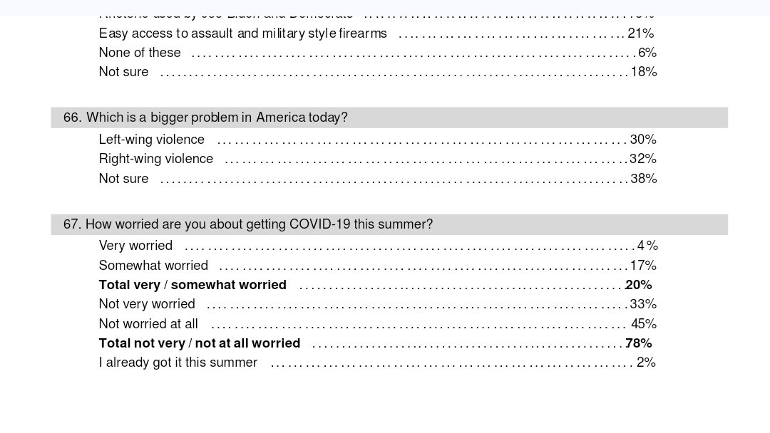 Anyway, yes, 78% of people who just got asked 66 questions FIRST about politics, the assassination attempt, military style firearms, do not care about Covid.....when asked about it .