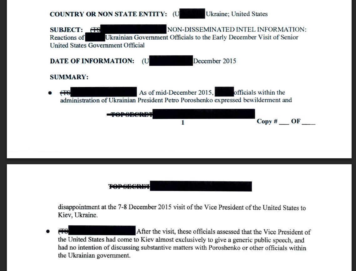 KyseessÀ siis "informoiva" raportti, joka pÀÀtettiin salata ja joka ei ole lopullisesti arvioitu varsinainen "tiedustelutuote". Aiheena tuolloisen Ukrainan hallinnon jÀsenten nÀkemykset mm. varapresidentti Joe BidenistÀ ..