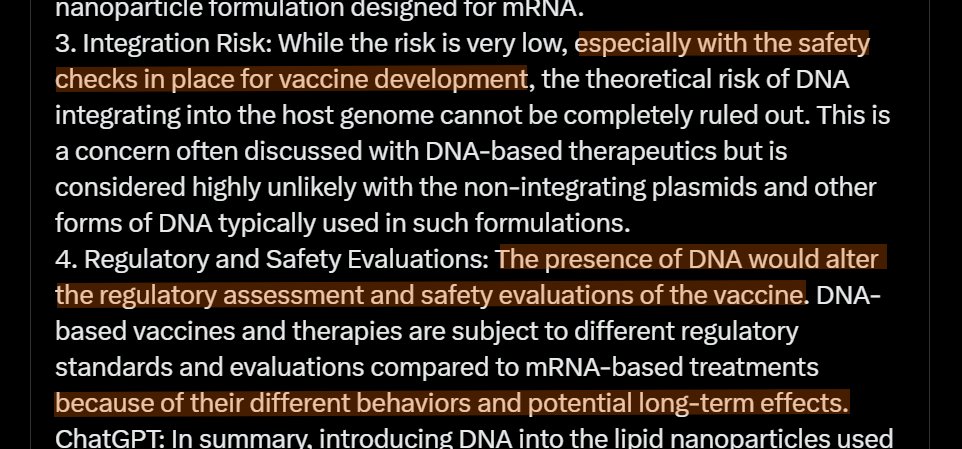 ".. ChatGPT: In summary, introducing DNA into the lipid nanoparticles used for mRNA vaccines would complicate both the biological effects and the regulatory considerations of the vaccine."