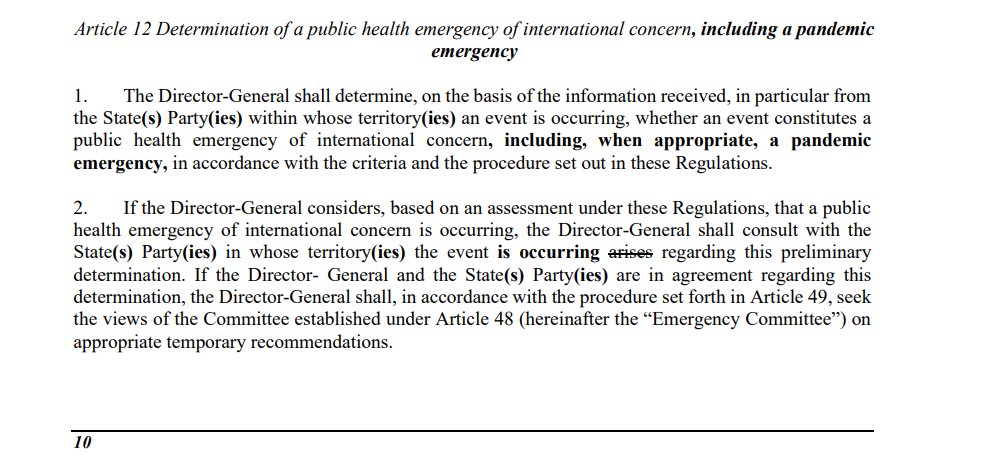 PÀÀsihteeri mÀÀrittÀÀ, milloin ollaan "kansainvĂ€listĂ€ huolta aiheuttavassa terveydellisessĂ€ hĂ€tĂ€tilanteessa" (/pandemiassa) ja hĂ€n voi tehdĂ€ alustavan julistuksen. Jatkosta hĂ€n tekstin mukaan konsultoi jĂ€senvaltioiden kanssa (varmaan "konsensus"- hakuisesti đ) ..