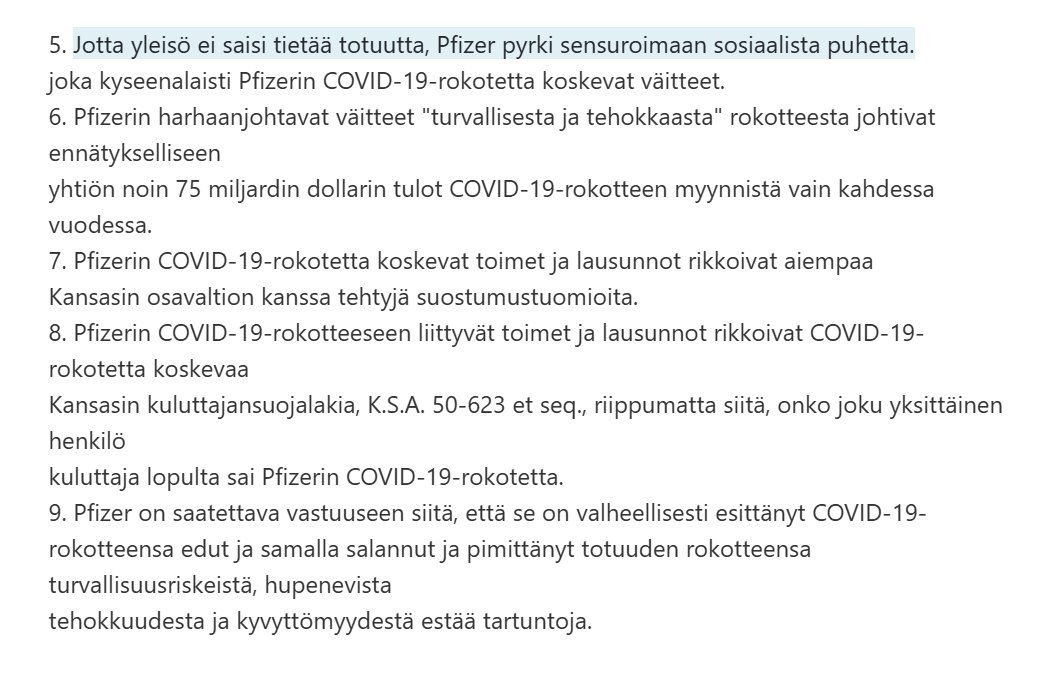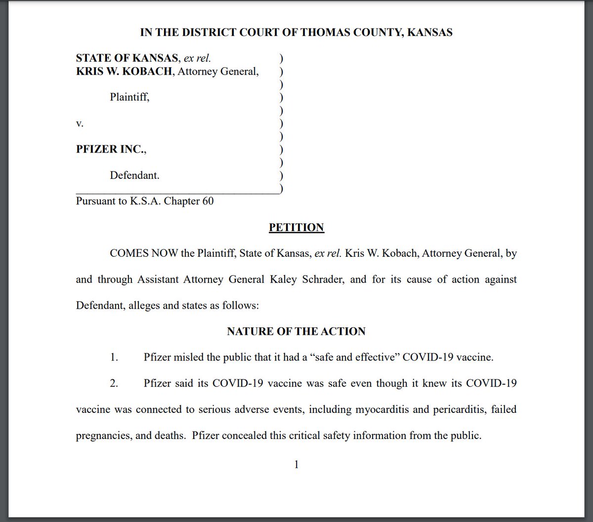 đ§”Yhdysvalloissa Kansasin osavaltion ylin oikeusviranomainen haastaa Paiserin koronarokotteen riskien salaamisesta ja valheellisten vĂ€itteiden esittĂ€misestĂ€.