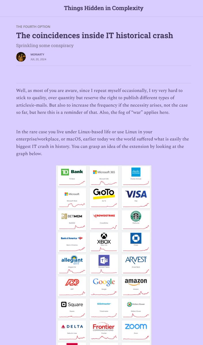 .. Tuleeko tÀmÀn pÀivÀn IT-katkoksesta "uusi normaali" vai "Covidin kaltainen tapahtuma"? Odotellaan ja katsotaan. Yksi asia on vÀistÀmÀtön - globaalilla eliitillÀ on epÀilemÀttÀ ratkaisu kriisiin."tinyurl.com/2p8fjxn5