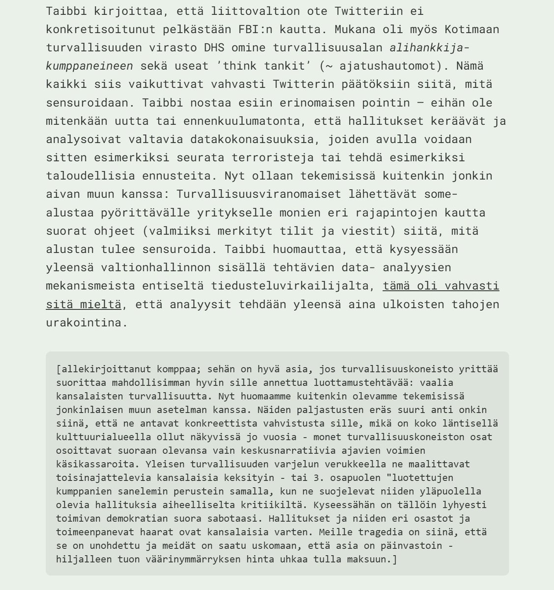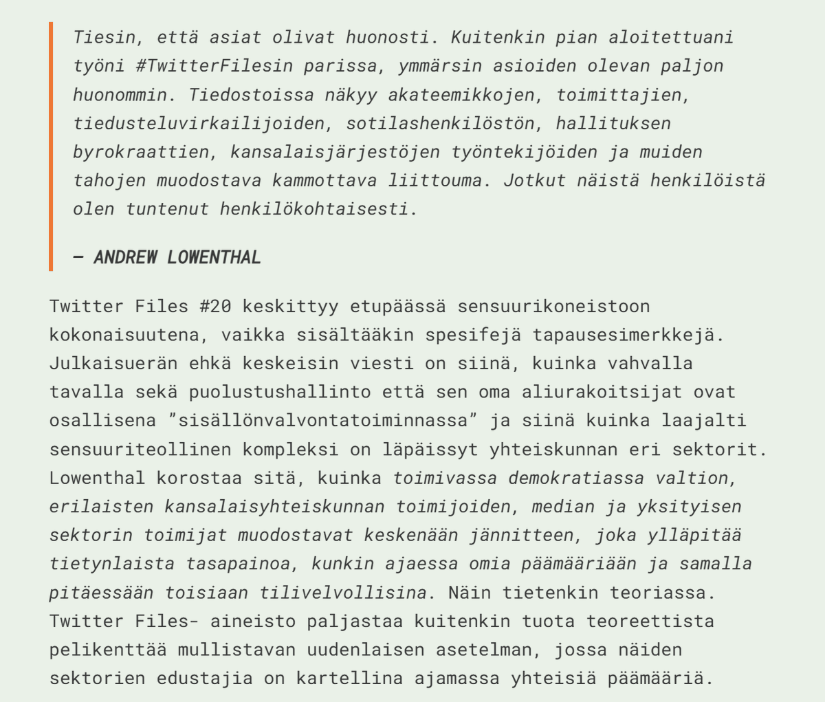 Twitter Files -aineistossa ja konseptissa on toki harmaita alueita; sivuan niitĂ€ artikkelissa: 'Twitter Files â Alustan sensuurimekanismit paljastuvat'. (kuva)