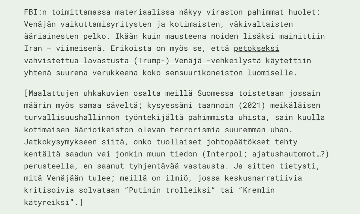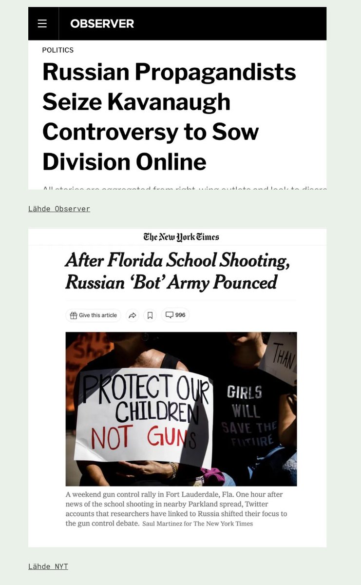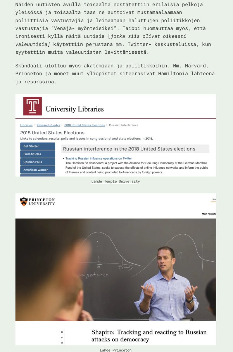 LisÀksi artikkelisarjan monesta eri artikkelista kÀy nÀkyvÀsti ilmi se, millaisin resurssein narratiivia on ohjailtu (esim. Trump- aiheinen uutisointi, joka kaikunut myös meillÀ)